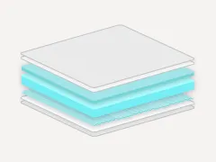 - Чехол из высокообъёмного трикотажа S.Tech, оснащенный массажными подушечками для особого уюта и комфорта во время сна и облегчённый с помощью воздушного слоя гипоаллергенного волокна;